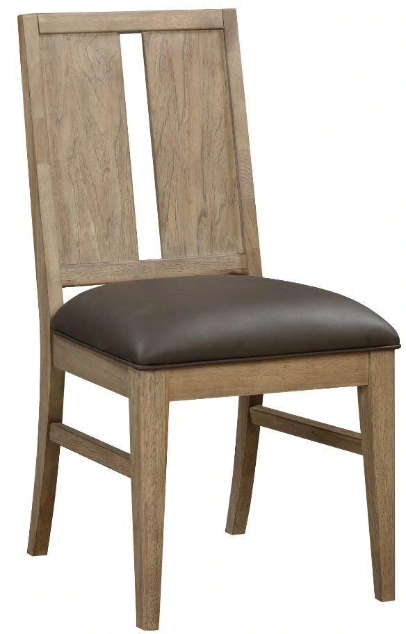 Drawing inspiration from exposed beam architecture, the Casual Loft Dining collection updates the traditional farmhouse style. Constructed with solid hickory with a light Roasted Hazelnut finish, the beauty of the wood becomes the focal point of the room. Strong vertical elements are found from the angular base of the table and the vertical hardware on the server front.