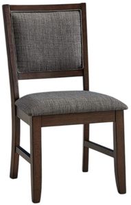 Chesney Dining translates the rugged beauty of natural hardwood into contemporary design. Inset horizontals break up the heft of the block pedestal base to add structural interest. A streamlined chair pairs light mineral gray fabric with the falcon brown finish to balance this modern rustic collection.Read More