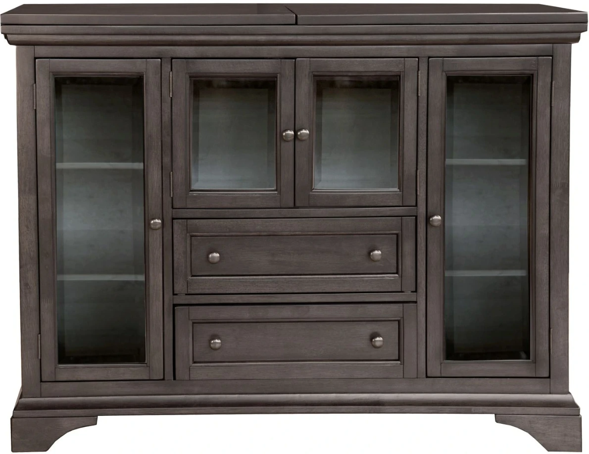 The A-America® Mariposa server offers practical storage with a warm gray finish. It features multiple drawers and cabinets, ideal for organizing dining essentials. Crafted from solid wood, this server combines durability with everyday functionality, making it a reliable addition to your home.Read More