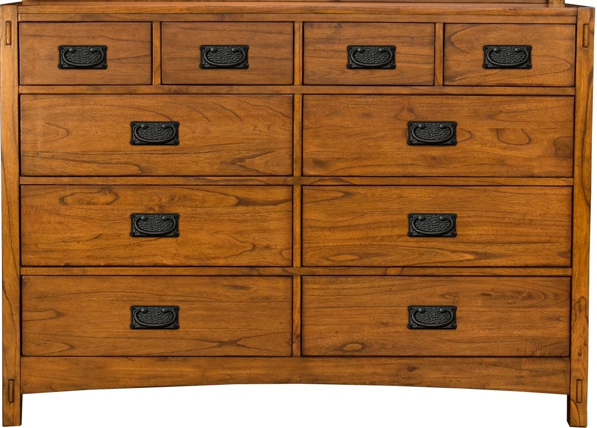 The simple, sturdy vertical lines of our Mission Hill bedroom speak to the motifs of the Arts & Crafts design movement, ornamented mainly by the grain of the wood, the joinery and the hardware. Although the mortise and tenon joinery and closely spaced long wooden slats are reminiscent of the related mission furniture style and offer a classically traditional aesthetic, the simple silhouette caters to a living style and philosophy that can make any home more satisfying, comfortable and beautiful. Features classic craftsman hardware that emulates a hand forged hammer tone texture in an oil-rubbed bronze finish.