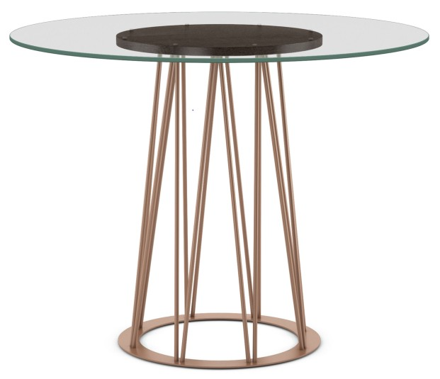 The Calypso collection will undoubtedly be the star of your dining room. Its charm and character emanate from its base with its mix of slanted angles and modern geometric lines. The Calypso base has a centerpiece that is available in either round (table, counter and bar height) or oval (table height only).Read More