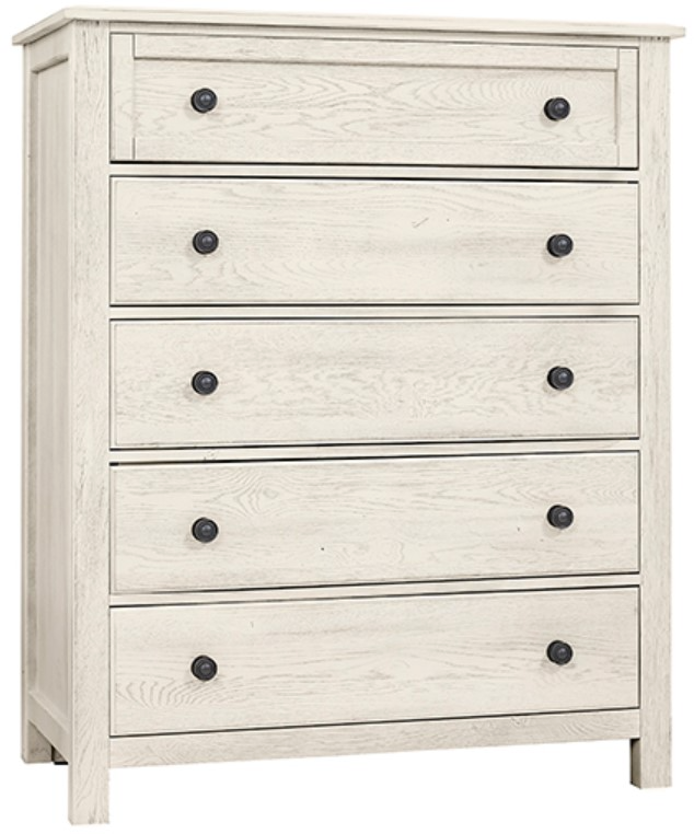 This chest with five drawers shown in weathered white finish offers casual style to any bedroom in your home. Made from solid American white oak. Make a bold a statement to your bedroom.Read More
