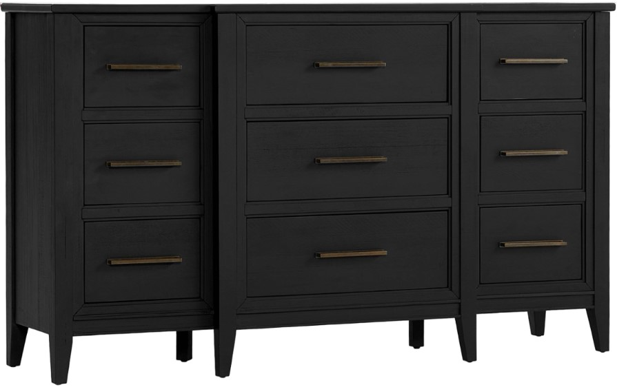 This Camden Dresser features a sophisticated design with its rich Domino finish. Offering generous storage with multiple drawers, it blends timeless style with transitional functionality. This dresser enhances any bedroom with its elegant appearance and durable, high-quality construction.Read More