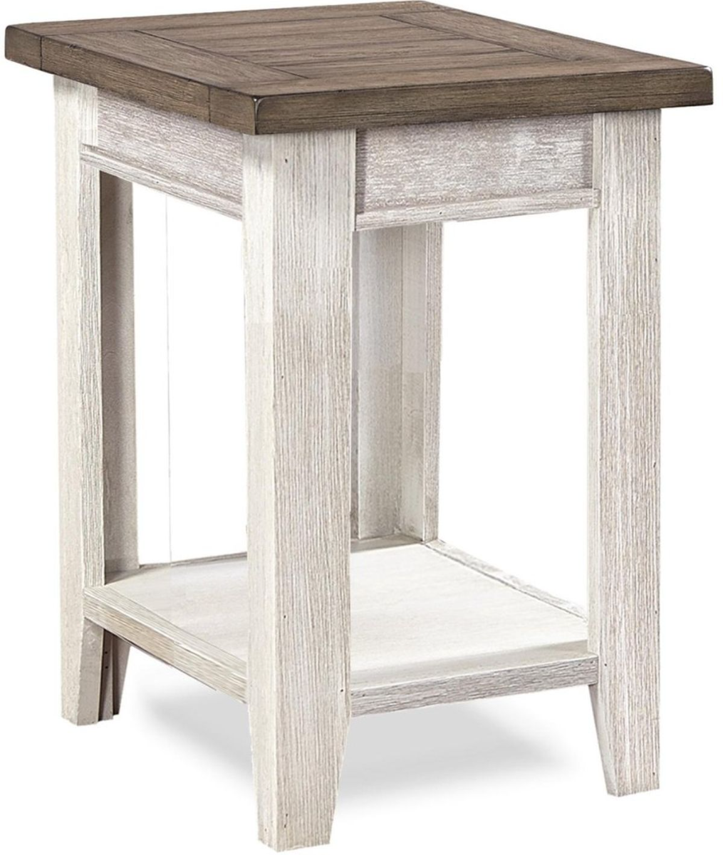 aspenhome® Eastport Drifted White Chairside Table with Brown Top