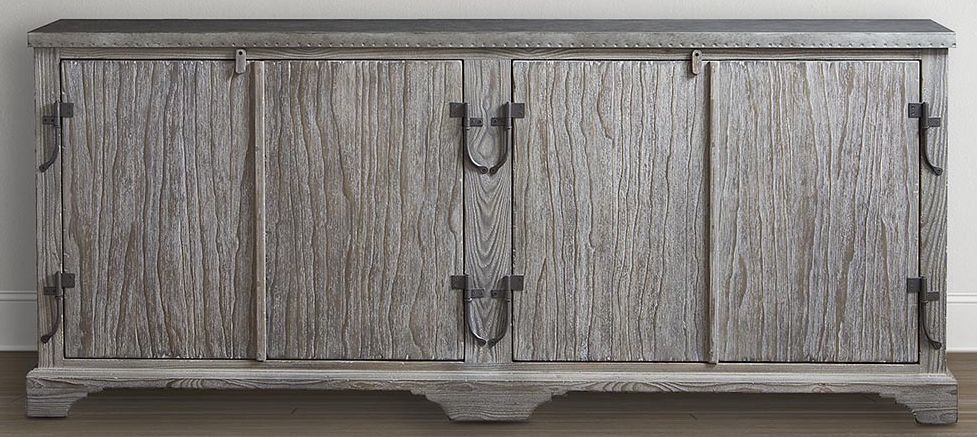 With its the tin top for serving wine, flat door with forged shutter hinges the cabinet is a stunning resemblance to the original 19th century wine tasting cabinets from the lush, mountainous and Mediterranean area or Northern Spain. Driftwood Oak finish with hand-tacked tin top.