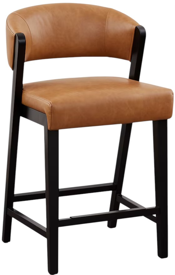 The Asher Counter Stool features a sleek, curved back, easy-care faux leather, and a sturdy ebony-finished wood frame. Its modern design and cushioned comfort make it a stylish, practical choice for kitchen islands or casual dining.Read More