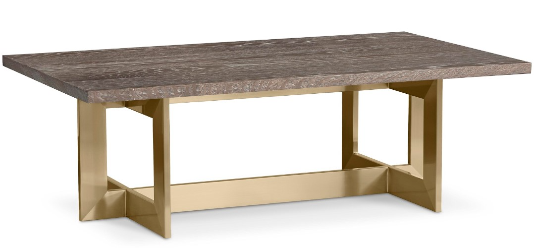Energize your room with the sleek, clean lines of the Benchmade Andover rectangular cocktail table. Natural beauty shows in the solid American oak top, 1.25 inches thick and crafted by hand. By contrast, the sleek champagne brass metal adds a smooth, refined touch to your living space.Read More