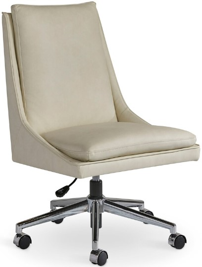 Upgrade your home office with a classy leather office chair. Soft leather accents its high back and stylish lines. The chrome swivel base adjusts for your comfort from 35.5" to 39" overall height, 18.5" to 12.75" seat height. On casters for easy movement throughout your office area.Read More