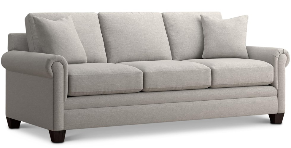 Moderately scaled domestic upholstery collection that features a choice of arm styles, top stitched seat cushions, and tapered legs. Optional nailhead trim and leg finishes are available in-store only.Read More