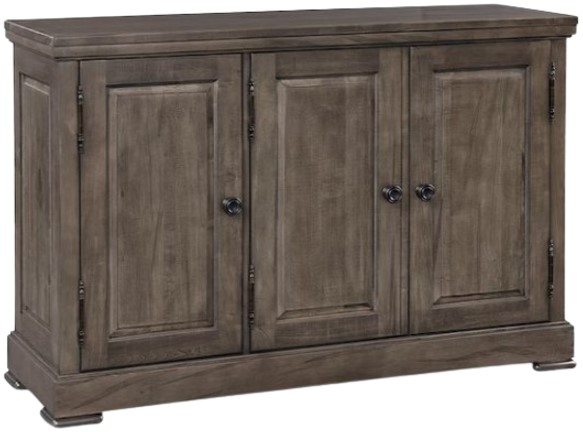 Three solid maple wood doors have antique pewter hardware, and inside is more ample storage with two adjustable wood shelves. Designed for wire management. More finish choices available in store.