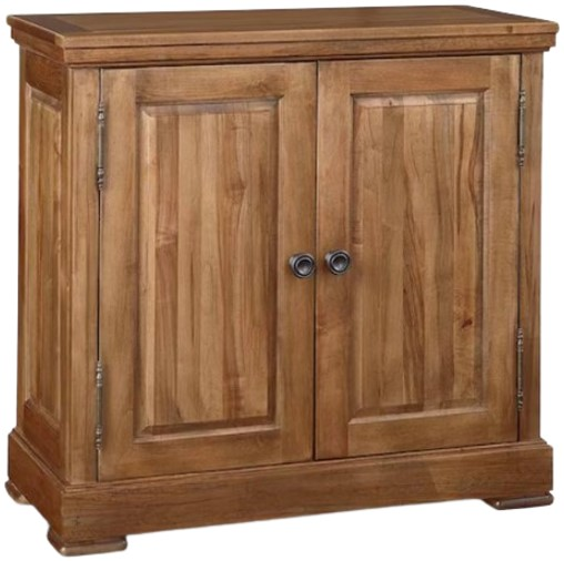 Two solid wood doors have antique pewter hardware, inside is more ample storage with one adjustable wood shelf. Designed for wire management. More finish choices available in store.