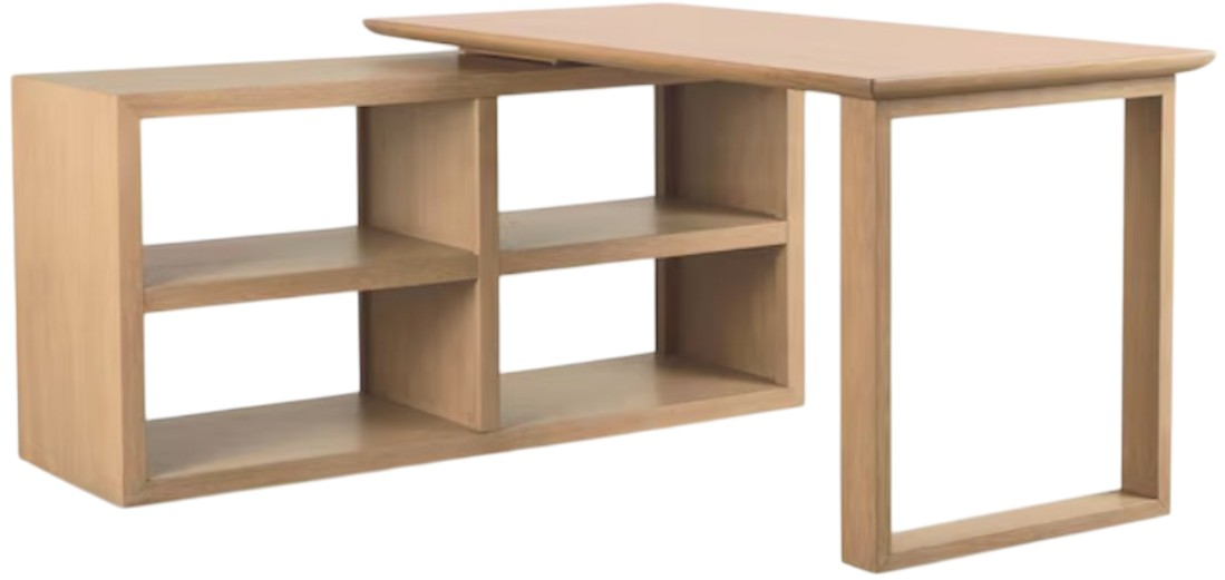 360° adaptability at a mere swivel is the promise made by our HomeWork modular l-Shaped desk. The base of the desk features 4 open shelves and is the foundation for a swivel-top writing surface that can form a right or left L-Shape or any angle in between.Read More