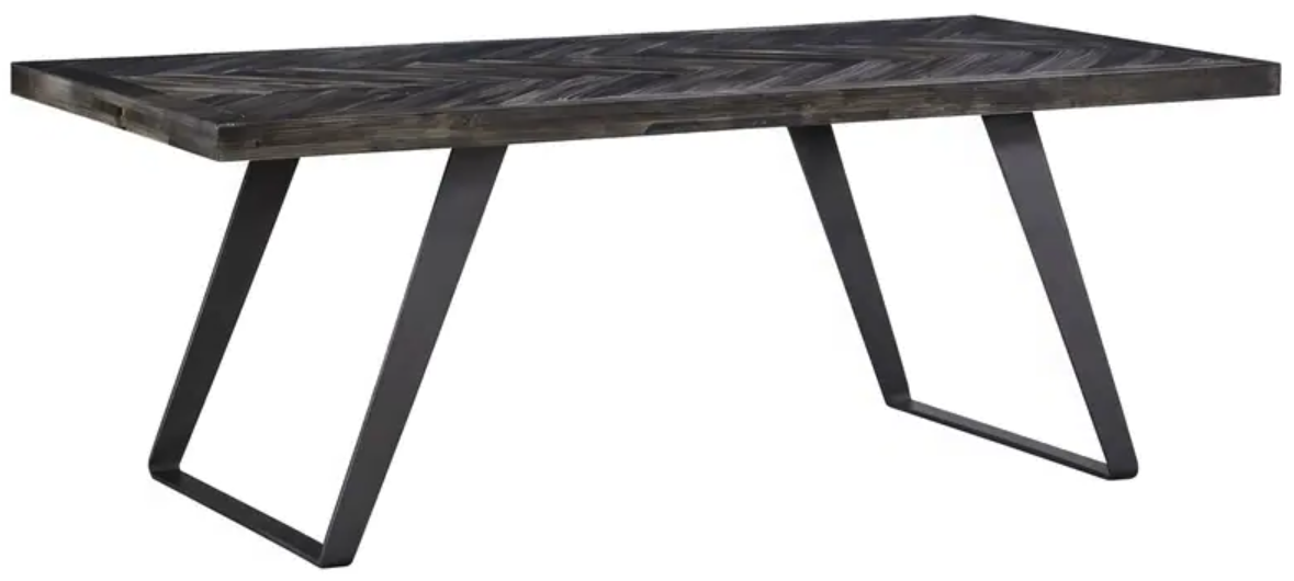 The Aspen Court Dining Table is designed with a beautiful wood top in a Chevron pattern. Modern metal legs add to is rustic style. Pair this dining table with the Aspen Court Dining Chairs for a complete set that seats between six to eight guests.Read More