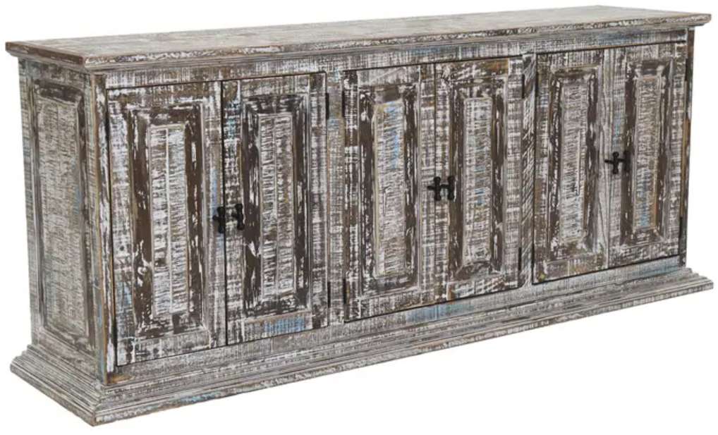The Cottage Creek Furniture Bahari Distressed Multi-Color Console offers a vibrant, rustic appeal with its mix of distressed colors. Its spacious design provides plenty of storage and display options, making it a functional yet eye-catching addition to any room.Read More