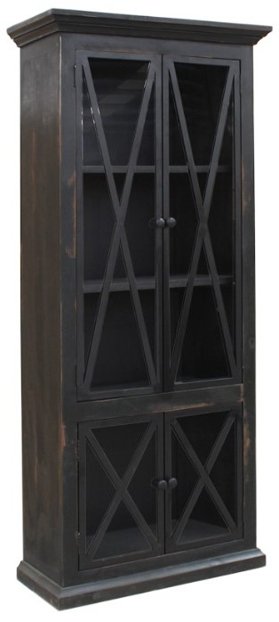 Offered in three distinct finishes, the Baillie Showcase is meticulously hand-crafted. Its two elongated doors and smaller doors below, have glass fronts with a striking crossed motif. Inside the top cabinet are two shelves providing ample space for storage or display. In addition, you will find extra room in the two-door bottom cabinet.Read More
