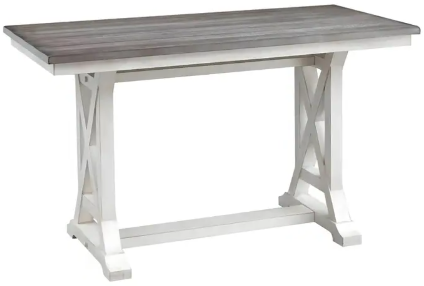 The Bar Harbor Counter Height Dining Table in Cream, showcases a beautiful trestle-style base with contrasting natural, wood grain top. This striking table is taller than the standard height, offering the perfect gathering spot for four to six guests. Matching Counter Height Dining Chairs are sold separately.Read More