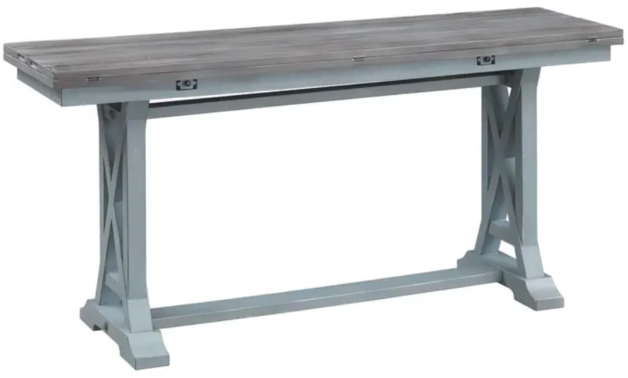 The Cottage Creek Furniture Bar Harbor Natural Flip-Top Console Table with Blue Base combines coastal charm and functionality. Featuring a natural wood top that flips open for hidden storage and a vibrant blue base, this piece serves as both a stylish accent and a practical storage solution for any room.Read More
