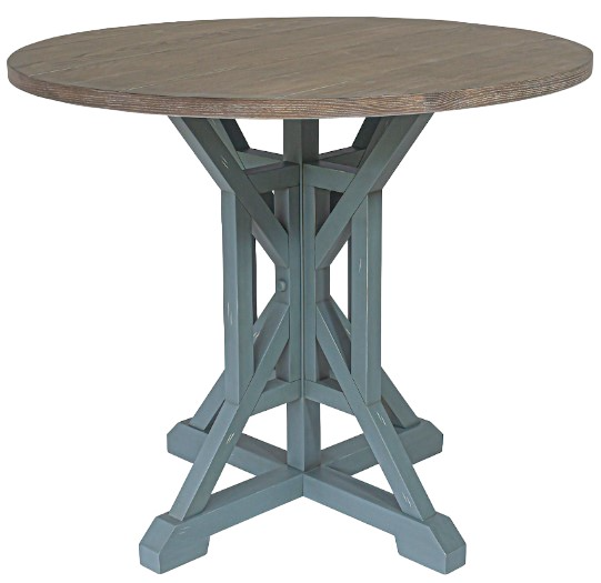 The Beach View Counter Height Dining Table is hand-built and finished in distressed blue with a darker wood top. Designed in counter height, this table is perfect for a smaller kitchen nook or dining area. Its base has an intricate lattice design to complement the matching dining chairs.Read More