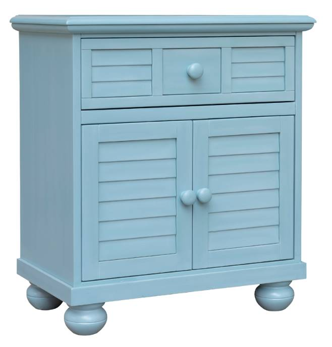 The Beachfront Master Door Nightstand in Ocean Blue brings unique style with maximum beside storage to your bedroom. On top is a drawer with a stylish shutter look to match the two drawer fronts below. Inside the doors you will find a fixed shelf for extra storage room.Read More