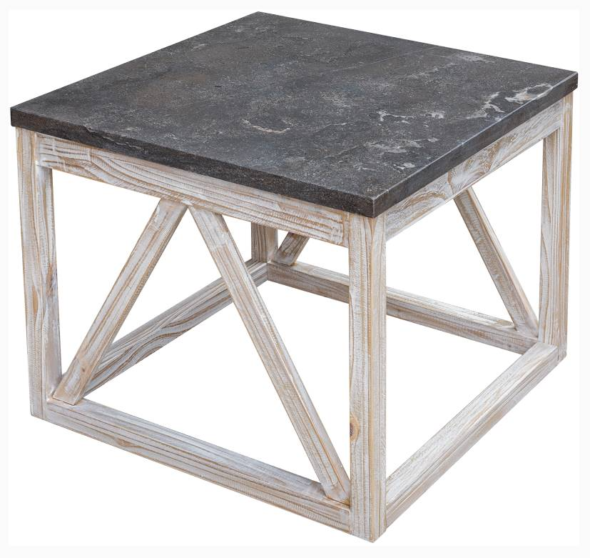 Artfully crafted, the Blue Ridge End Table is truly unique. Designed with a solid wood base in an open geometric pattern, coupled with a stone top, you can't resist its hip style. The solid Bluestone top pairs beautifully with its distressed wood finish on the base, for a one-of-a-kind look.Read More
