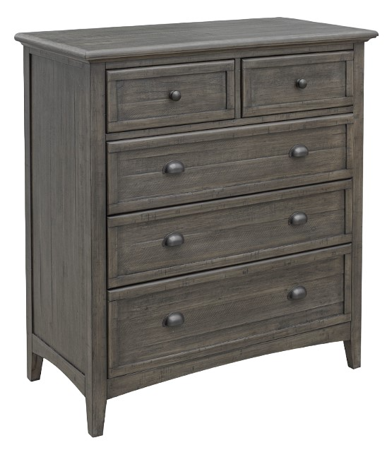 The Bridgeport Chest is hand-crafted with five drawers for ample storage in your bedroom or guest room. Its two top drawers are smaller with metal knob pulls while the larger bottom drawers provide larger space for clothing or linens. These larger drawers have convenient metal cup pulls.Read More