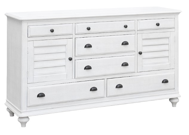 Versatile and stylish, the Brockton Dresser has a hand-placed shutters on its two door fronts. Designed with ample storage space, you will find three smaller top drawers, two central drawers, two large bottom drawers and one shelf behind each door.Read More