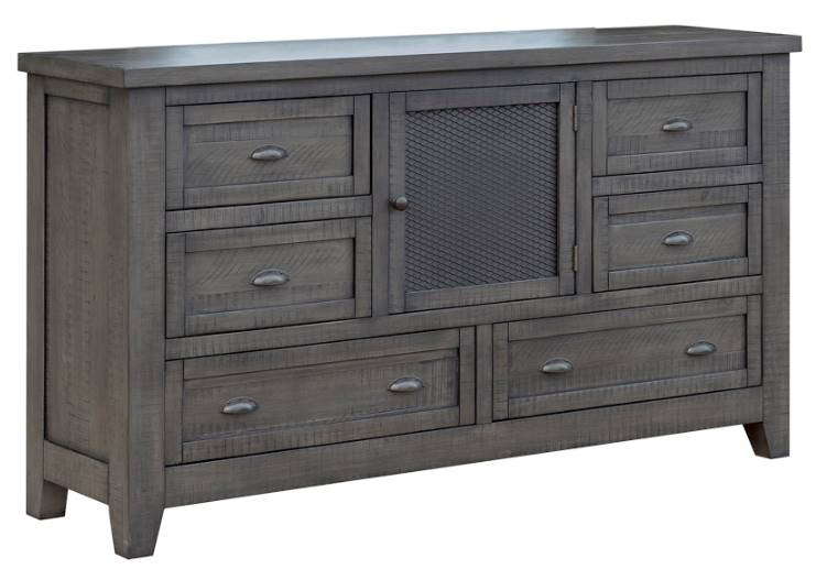 The Brookfield Dresser in Grey is hand-crafted from solid wood with a distressed finish adding to its rustic charm. Four drawers and a wire mesh door front sit above two larger drawers, allowing ample storage room for clothing or linens.Read More