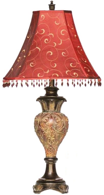 H & H Lamp Berber Lamp with red beaded shade and berber finishRead More