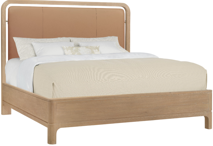 The Banyon Bay bed in the Toast leather is a perfect combination of modern design and natural materials. Crafted from white oak solids, oak veneers, and finished leather, it showcases a multi-step desert oak finish with wire-brushing and cerusing for added texture.Read More