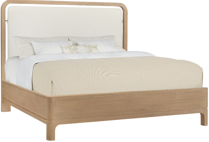 The Banyon Bay California King panel bed in the sun-bleached leather offers a luxurious and spacious sleeping experience. Constructed from white oak solids, oak veneers, and finished top-grain leather, it boasts a light desert oak finish enhanced by wire-brushing and cerusing.Read More