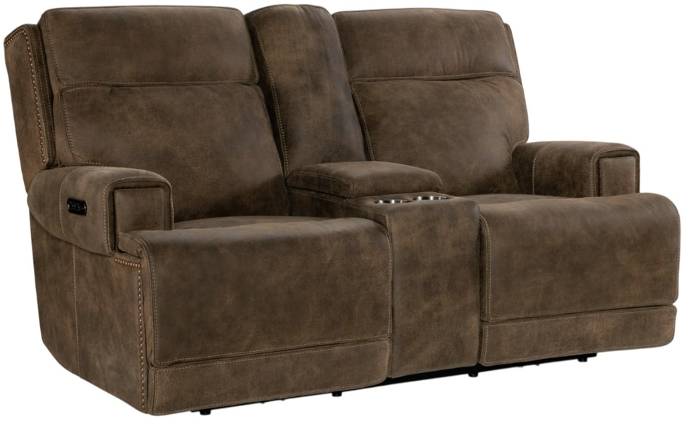 Relax in luxury with the Wheeler power reclining console loveseat. Crafted in leather, it features power recliners, adjustable headrests, and a convenient center console with cup holders. Enjoy personalized comfort and timeless elegance, creating a perfect spot for effortless, elevated relaxation.Read More