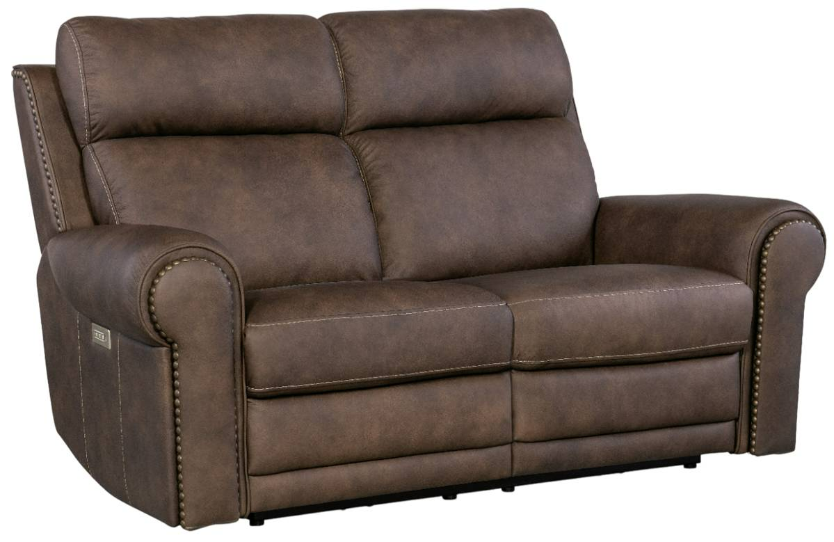 The Duncan power loveseat offers premium comfort with a power headrest and lumbar support. Upholstered in rich bark-colored leather, it features smooth reclining, plush cushions, and elegant stitching for a luxurious, contemporary, and deeply relaxing seating experience.Read More