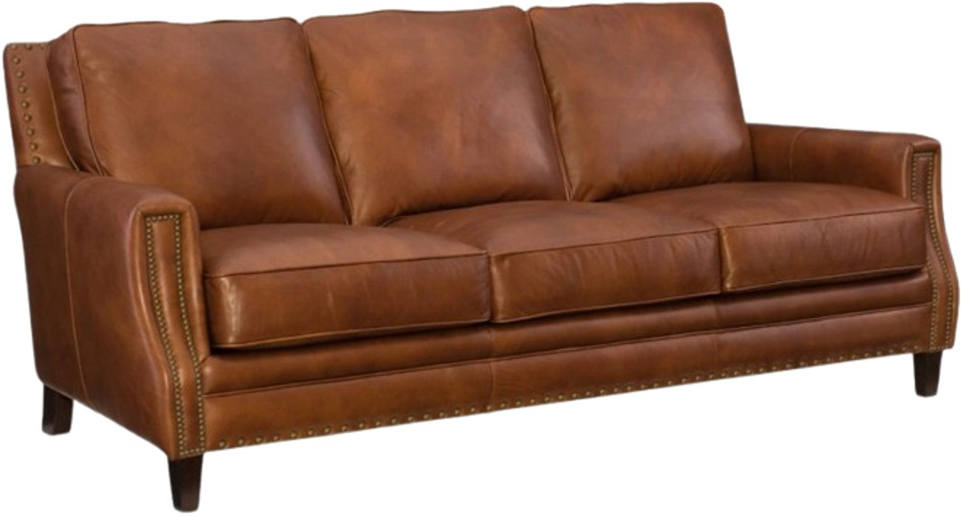 Exuding the ambience of the American west and the character of refined designer details, the Exton 3-over-3 sofa is covered in aniline top grain old English saddle leather with dark wood legs and accented by nailhead trim on the front of the arms and across the base.Read More
