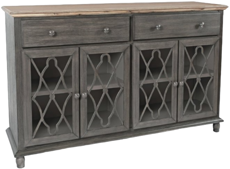 These versatile cabinets will be a stylish focal point anywhere in your home. Glass inlay doors with elegant fretwork and three alluring two toned finishes, all available in three sizes, choosing your favorite will be your hardest decision.Read More