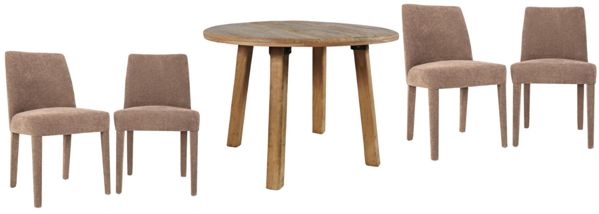 Reclamation Salvaged Wood Round Dining Table and 4 Wilson Upholstered Dining Chairs