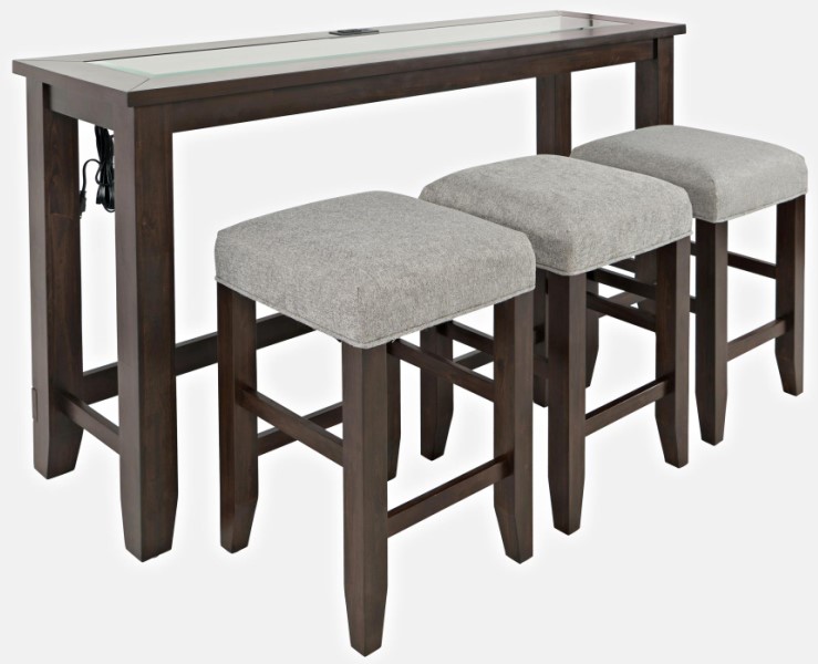 Includes: Counter height table and 3 upholstered counter stools