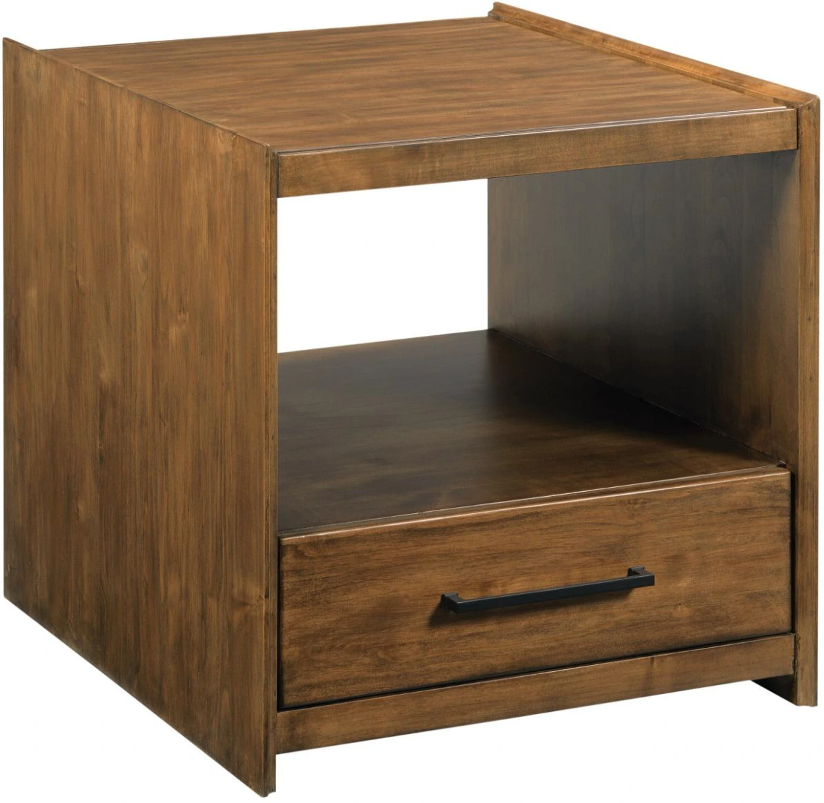 Similar to the Edie Coffee Table, the Edie End Table uses the unique configuration of a shaped overhang created from the end panels. This gives the piece a sleek, clean silhouette and draws the eye to the fine cove shape where the two solid wood elements meet. It also features a lower drawer for added storage.Read More