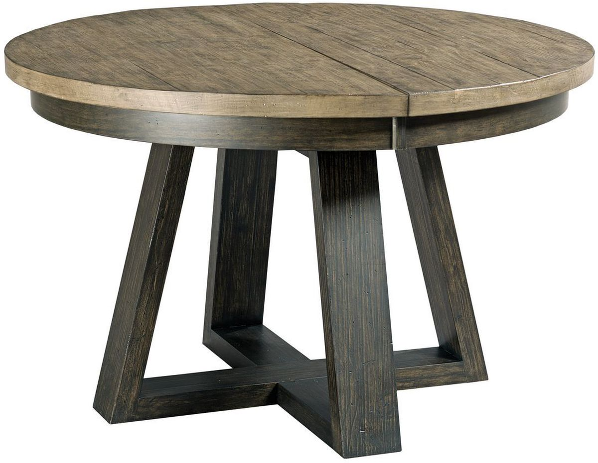 Rather than using typical wood dimensions, much of the final look can be traced back to the heavier thickness on the top and the legs. This sturdy look is in keeping with the Plank Road personality while maintaining clean lines. The Button round dining table comes with a 20 inch leaf to create an oval dining table. It also features our Kinguard Performance finish which adds a little extra protection should a spill happen.