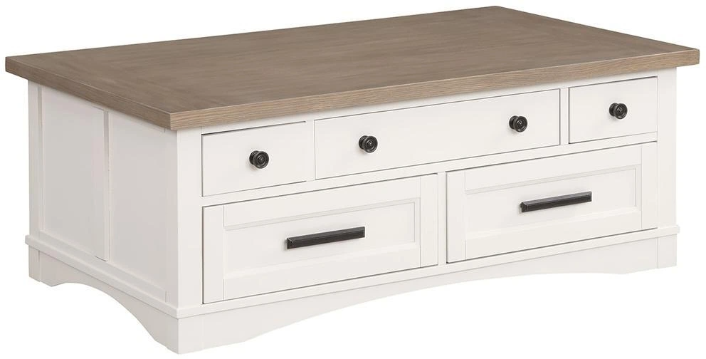 Add style and functionality to your seating area with this innovative Cocktail Table with Lift Top from the Americana Modern Collection. The innovative lift top opens and extends to create a flexible surface for working or eating. Its clean lines and vintage-inspired styling are finished in a crisp white painted Cotton finish.Read More