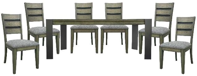 Casual and comfortable, this dining group from the Cedar Fork collection embodies transitional design. The set features a 78" rectangle leg table and six of our coordinating upholstered seat ladderback dining chairs in a smooth smoked arabica finish.Read More