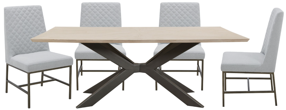 Set includes rectangular dining table with 4 upholstered chairs