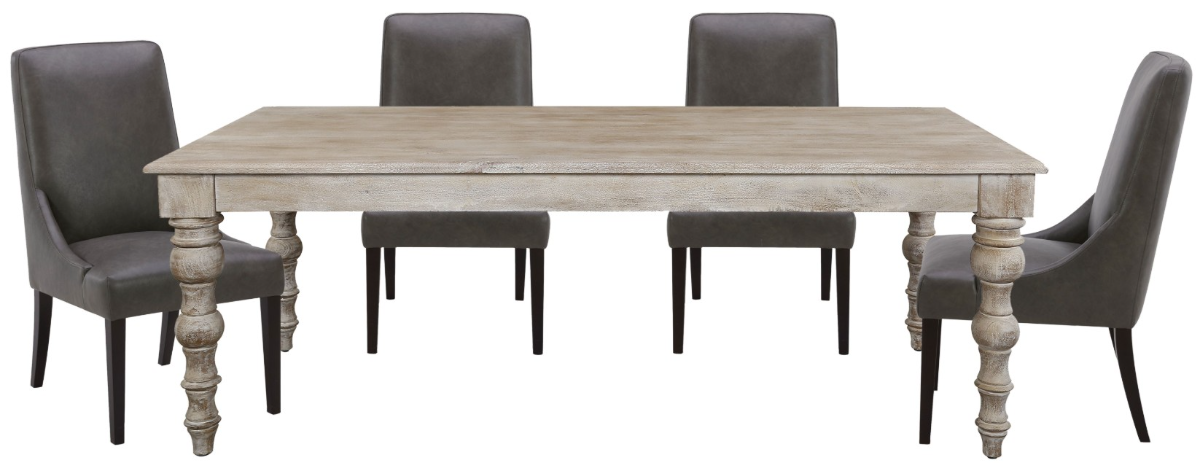 Set includes dining table with 4 upholstered chairs