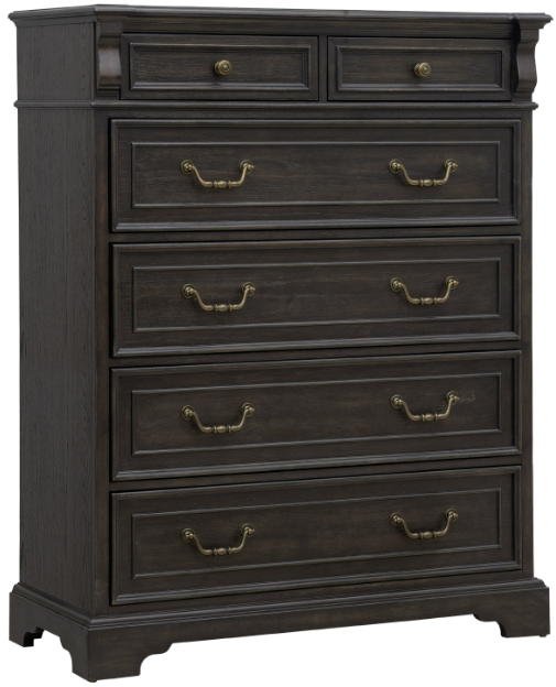 The Hickory Creek 6-drawer chest features six spacious drawers in varying sizes. Distinctive corbels and petite waist molding add architectural depth and a touch of traditional craftsmanship. The luxurious brown velvet wood finish highlights the rich grain and natural beauty of split heart cathedral hickory veneers.Read More