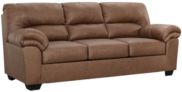 Modern comfort never looked so good. Sporting supremely soft yet durable cushions accented with high-fashion jumbo stitching, this stunning sofa is the ultimate choice in comfortably cool, contemporary style. Its caramel-hued faux leather indulges with an upscale feel and wows like the real thing.Read More