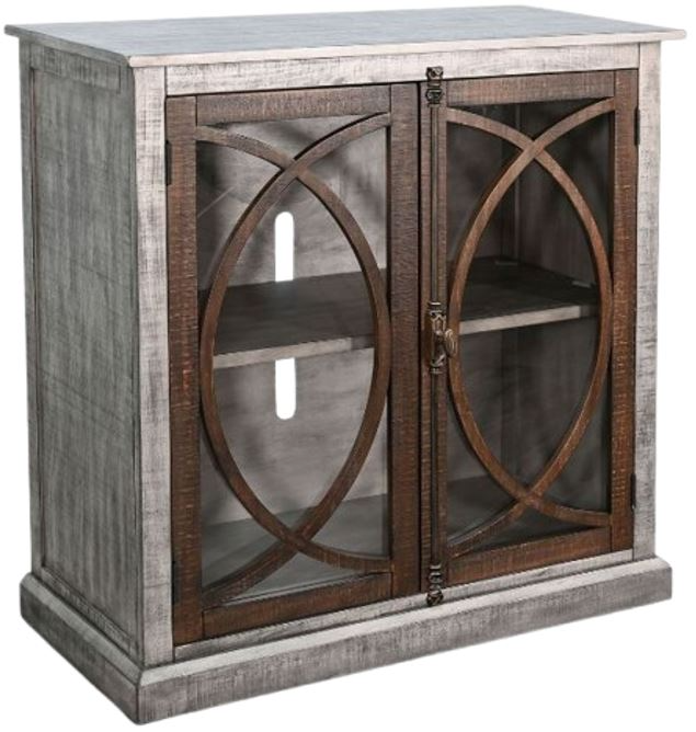 Constructed with precision from Mahogany wood, this media accent cabinet showcases a captivating two-tone design. Glass cabinets add a touch of sophistication, with intricately designed wood patterns on the glass doors for a unique visual appeal. The shelf within the cabinet provides space for organizing and displaying your essentials.Read More