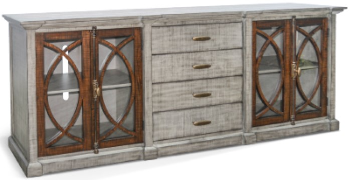 The Sunny Designs™ Media Console is a sleek and functional addition to your entertainment space. With a stylish alpine grey and tobacco leaf finish and 90-inch size provides style and ample storage for your media components and accessories. The clean lines add a touch of sophistication.Read More
