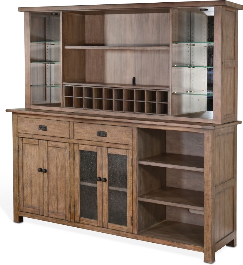 This buffet hutch is built with a mahogany solid and veneer covered in a buckskin brown finish that sits on a beautiful buffet base. Perfect for any room in the house with its versatile style and finish.Read More