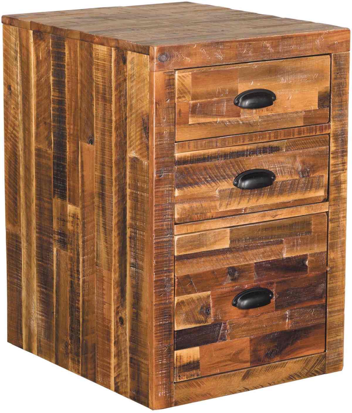 Filing cabinet is made out of rough sawn acacia solids and veneers. Has a sleek design and rustic acacia finish.