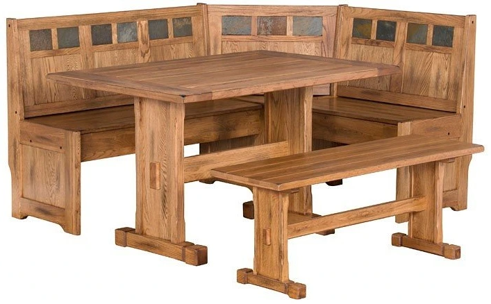 The Sedona breakfast nook is beautifully crafted with distressed mindi and mahogany solids and veneers that accentuate its beauty. The versatile storage benches are reversible to fit any space blending style and function.Read More