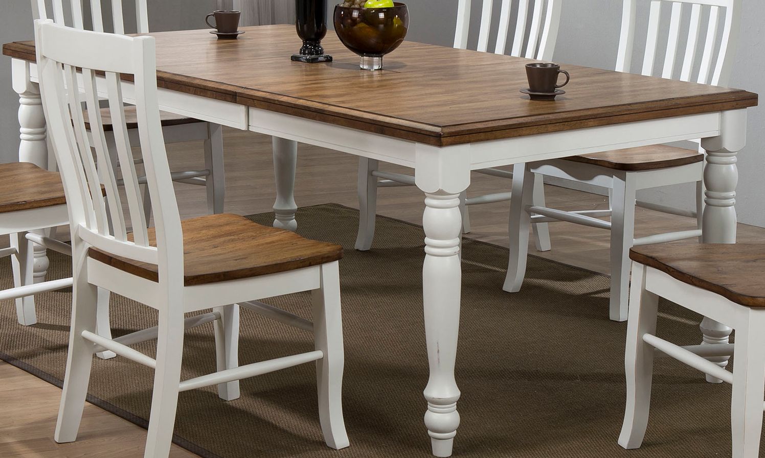 Winners Only® Pacifica Rustic Brown 78" Leg Table with Butterfly Leaf and White Base